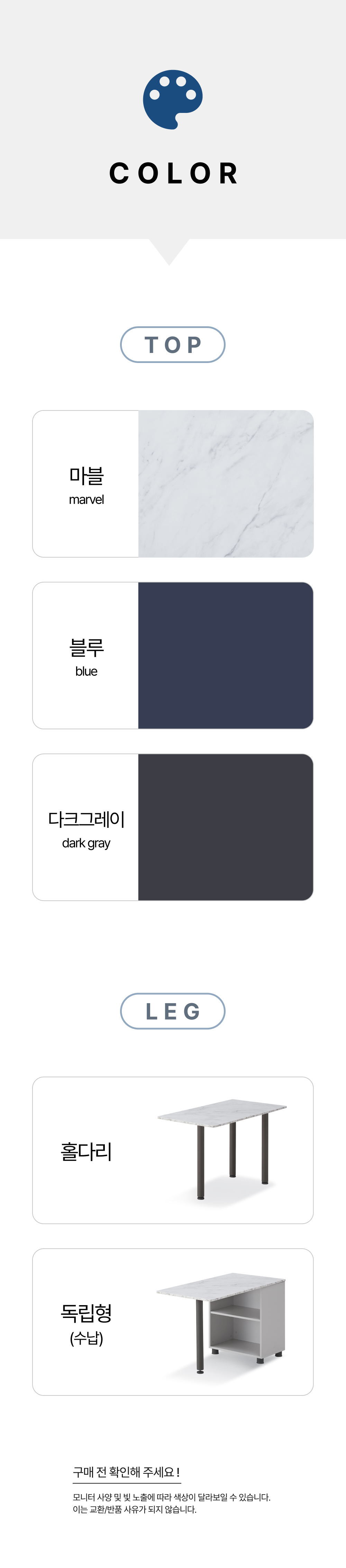 | 배송지역 & 배송비 | * 전국 지역 (제주 및 도서 산간 지역 별도 문의) * 가구 특성상 배송비는 1개씩 개별 청구 됩니다. * 서울/인천/경기 일부를 제외한 경기외곽/지방은 지역별 배송비와 설치비가 다르며 별도 문의하시면 됩니다. * 상품별 규격에 따라 설치(조립)비가 다르므로 하단 비용을 확인 후 구매 바랍니다. | ||