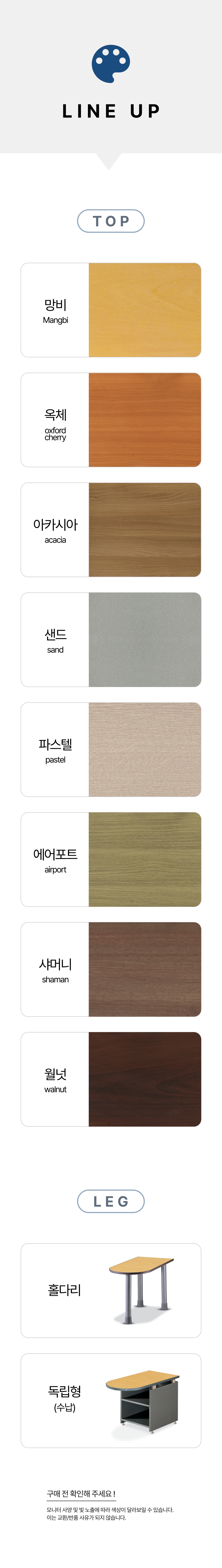 | 배송지역 & 배송비 | * 전국 지역 (제주 및 도서 산간 지역 별도 문의) * 가구 특성상 배송비는 1개씩 개별 청구 됩니다. * 서울/인천/경기 일부를 제외한 경기외곽/지방은 지역별 배송비와 설치비가 다르며 별도 문의하시면 됩니다. * 상품별 규격에 따라 설치(조립)비가 다르므로 하단 비용을 확인 후 구매 바랍니다. | ||