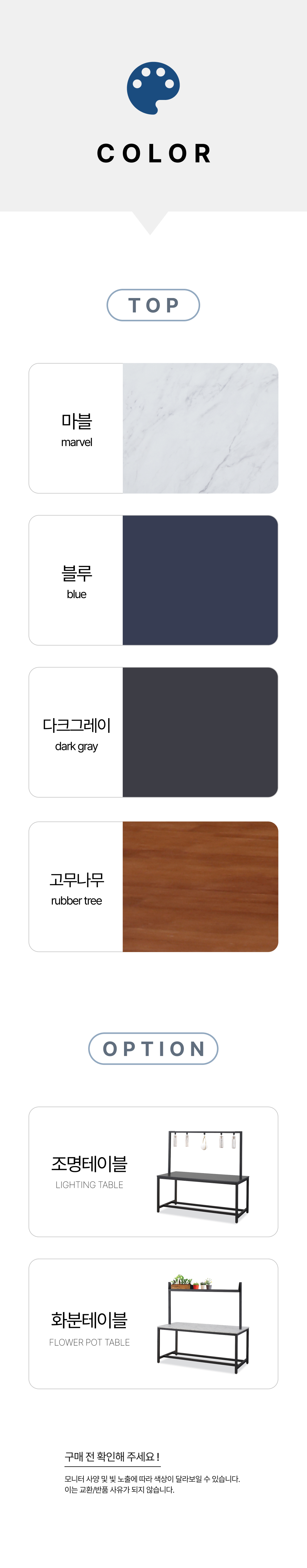 | 배송지역 & 배송비 | * 전국 지역 (제주 및 도서 산간 지역 별도 문의) * 가구 특성상 배송비는 1개씩 개별 청구 됩니다. * 서울/인천/경기 일부를 제외한 경기외곽/지방은 지역별 배송비와 설치비가 다르며 별도 문의하시면 됩니다. * 상품별 규격에 따라 설치(조립)비가 다르므로 하단 비용을 확인 후 구매 바랍니다. | ||