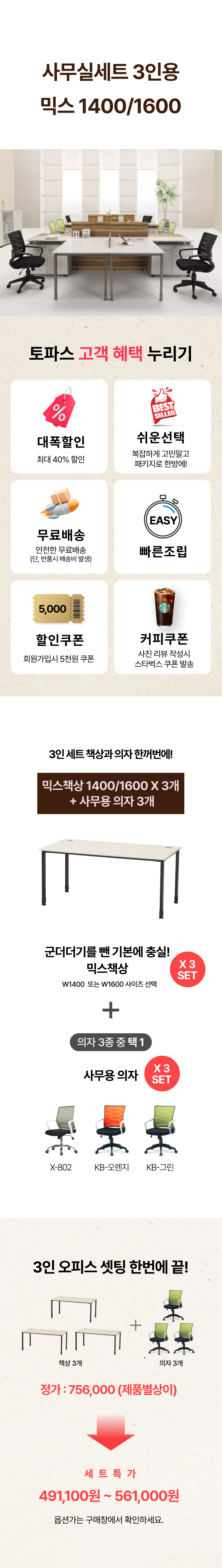 ✔ 책상과 의자는 각각 발송됩니다.