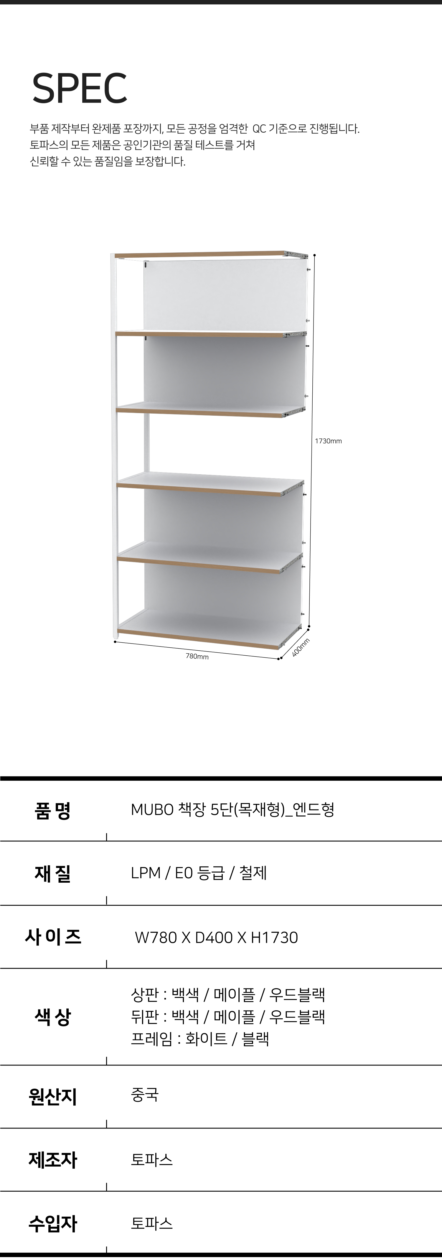 뮤보 목재책장 5단 엔드